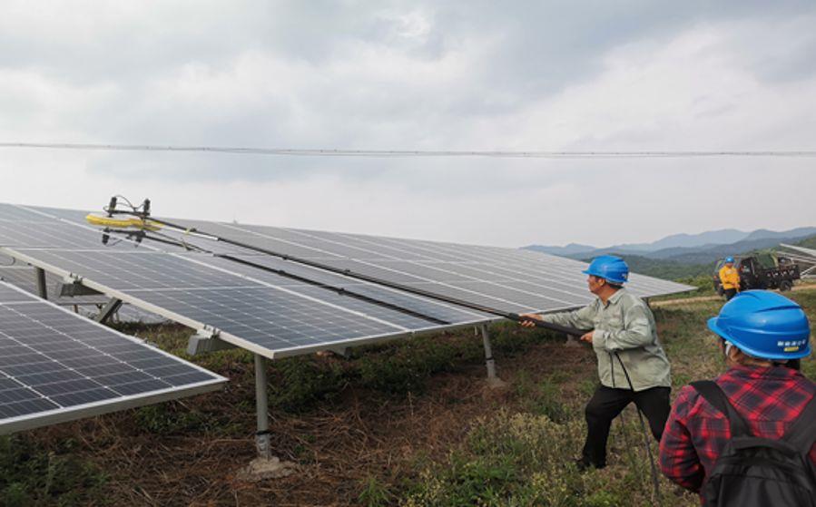 新能源公司大洪山光伏電站開展半自動化組件清洗作業。山地光伏開展組件清洗面臨的最大難題就是水。電站光伏... 【詳細】