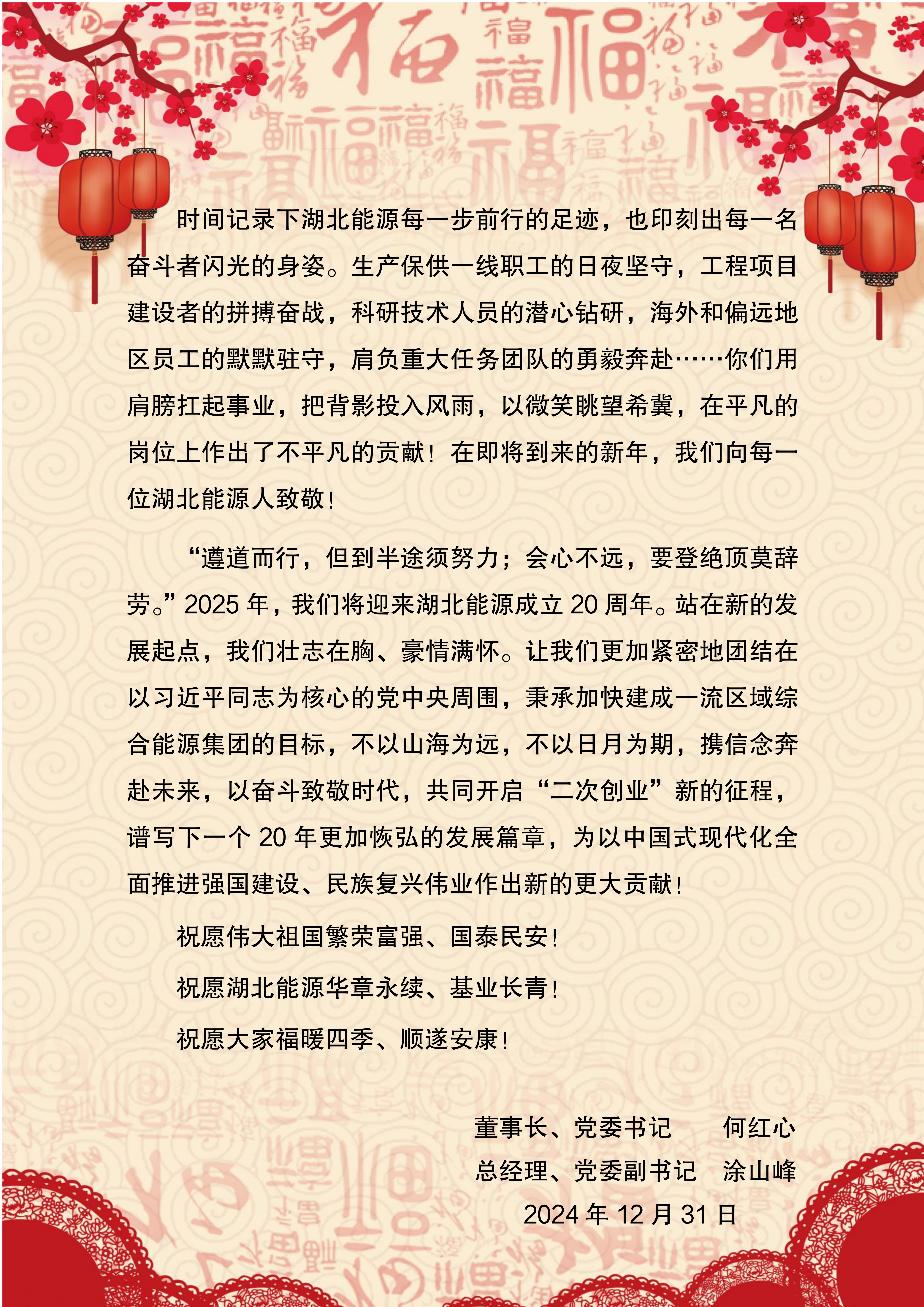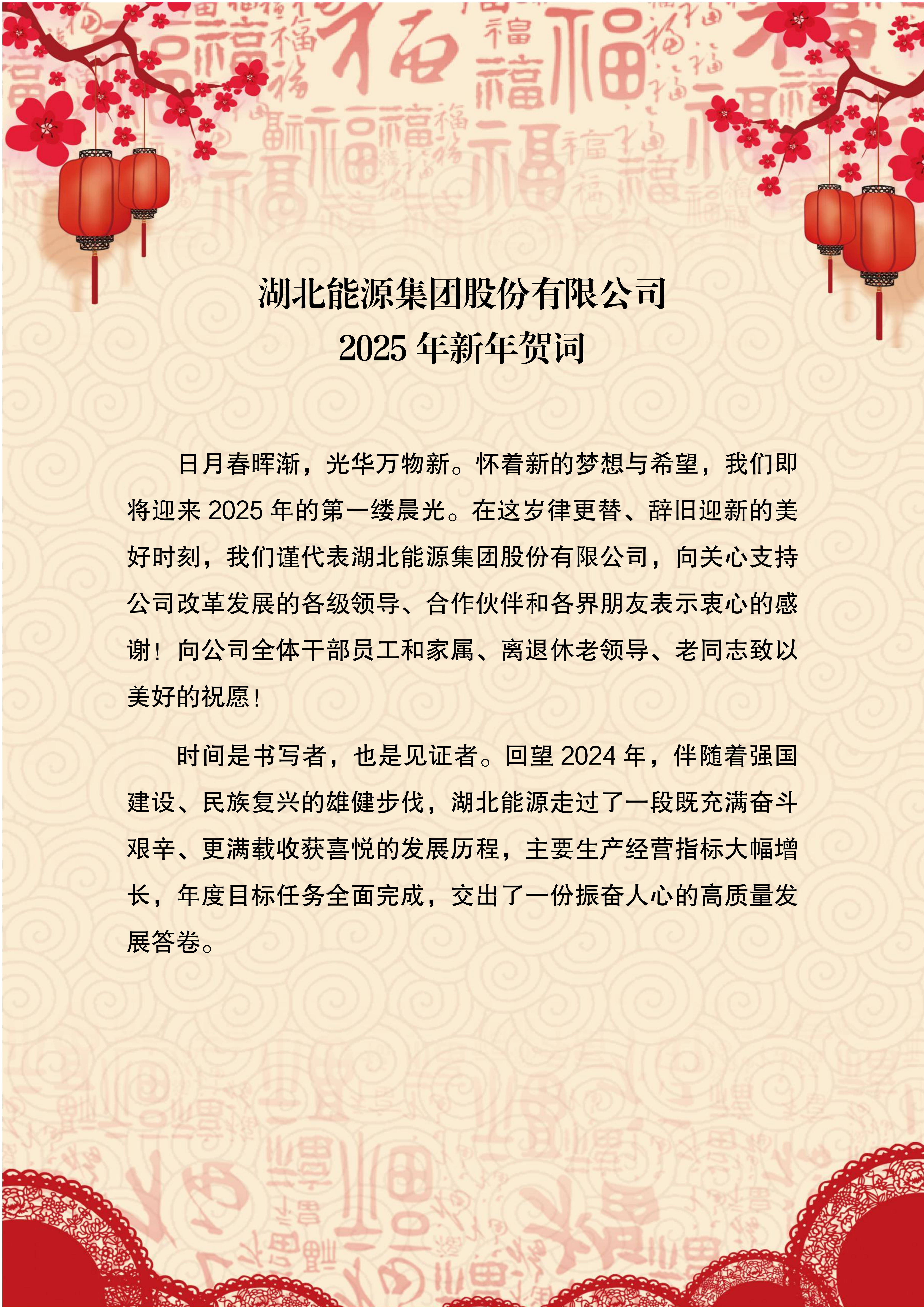 湖北能源集團(tuán)股份有限公司2025年新年賀詞